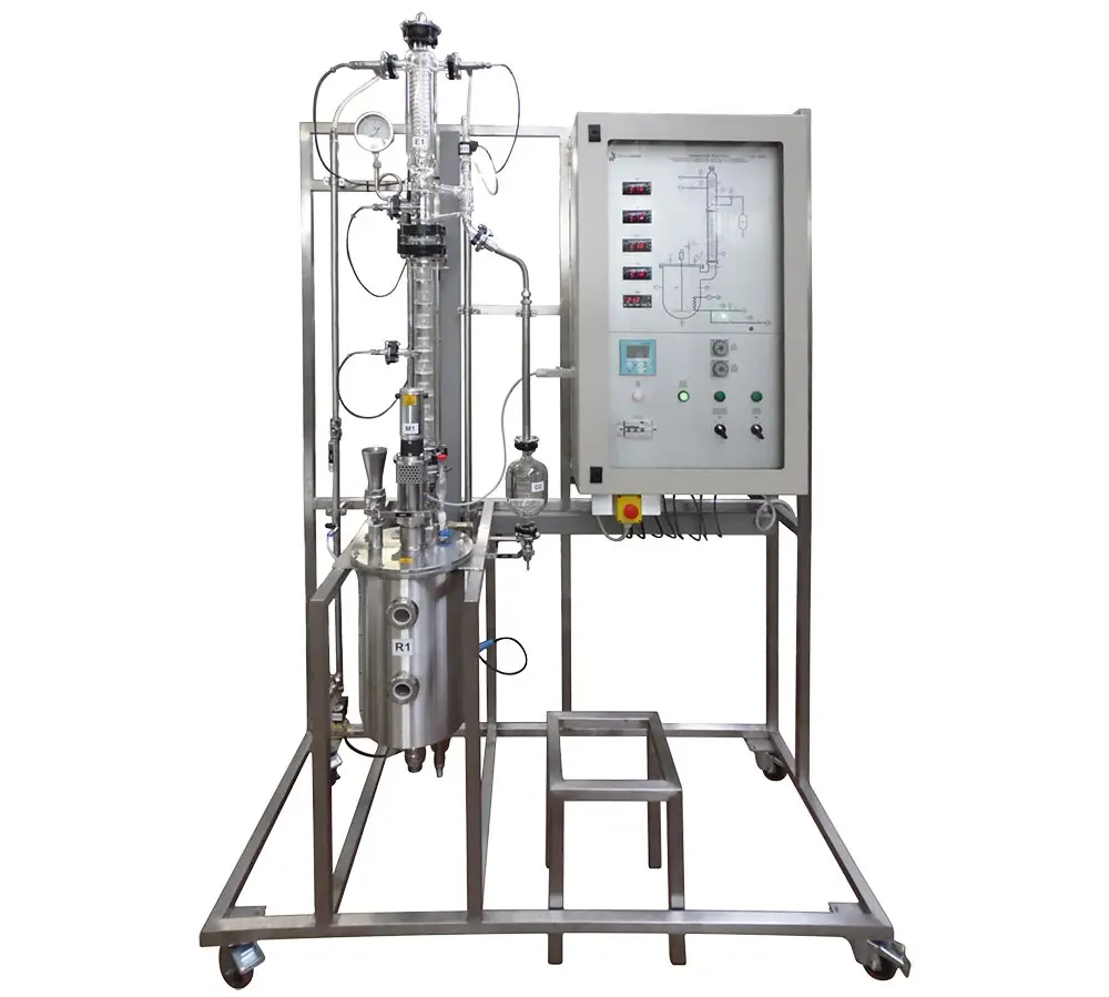 Bioethanol production pilot plant This equipment enables to carry out a realistic test of conversion of starch into ethanol through all the phases of this process in a multi-function reactor that can implement liquefaction, saccarification, fermentation and distillation.