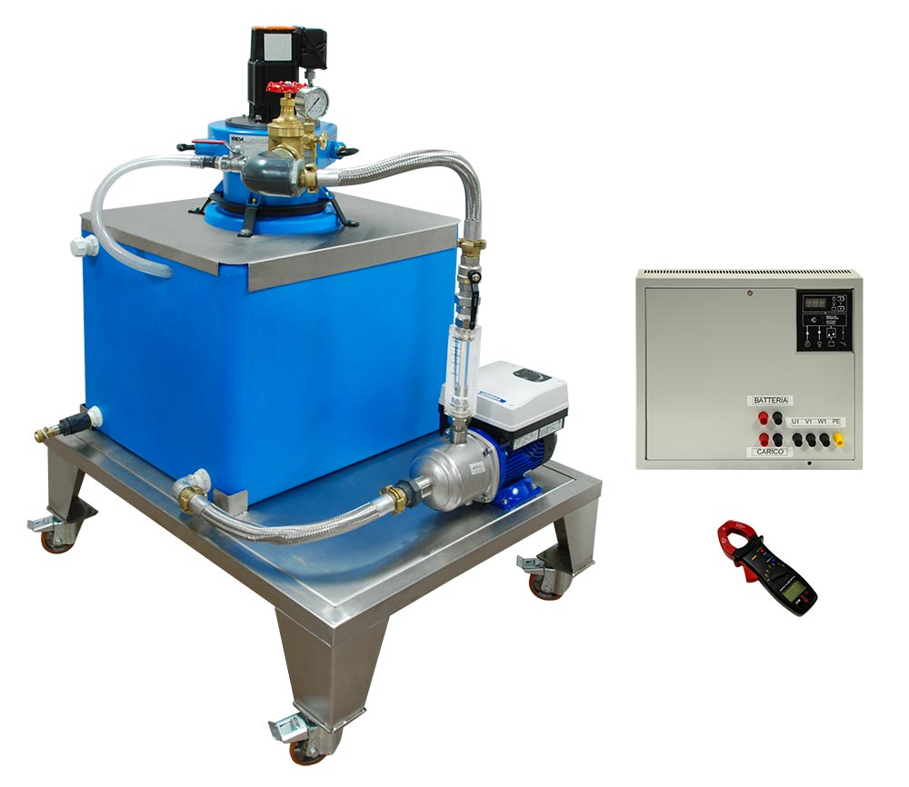 HYDROELECTRIC ENERGY GENERATION KIT Turbine-generator set:- stainless steel Pelton turbine- 6-jet distributor, 3 of which can be externally intercepted- permanent magnets synchronous generator- rated voltage: 25 Vac three phase- frequency